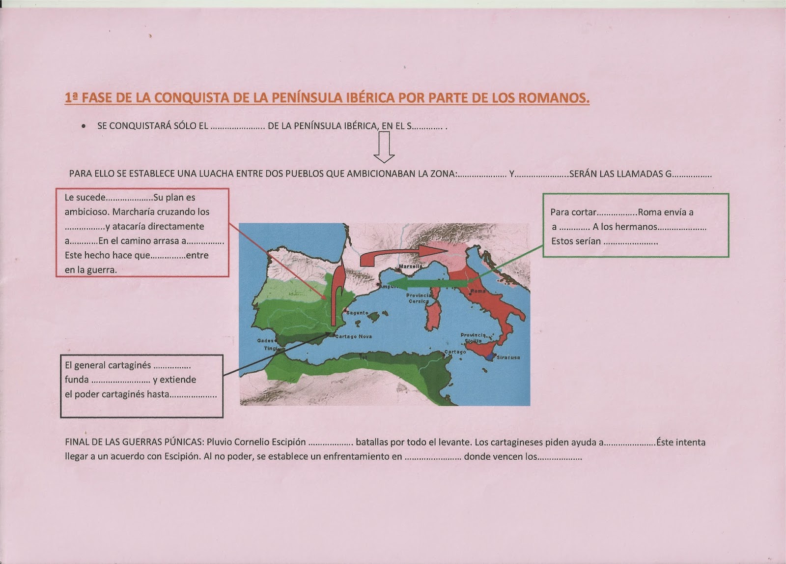 Rellena los huecos , explicando las fases de esa conquista: